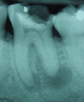 elzáródott vagy gyökércsúcsi elágazódást mutató gyökércsatorna megnehezítheti,